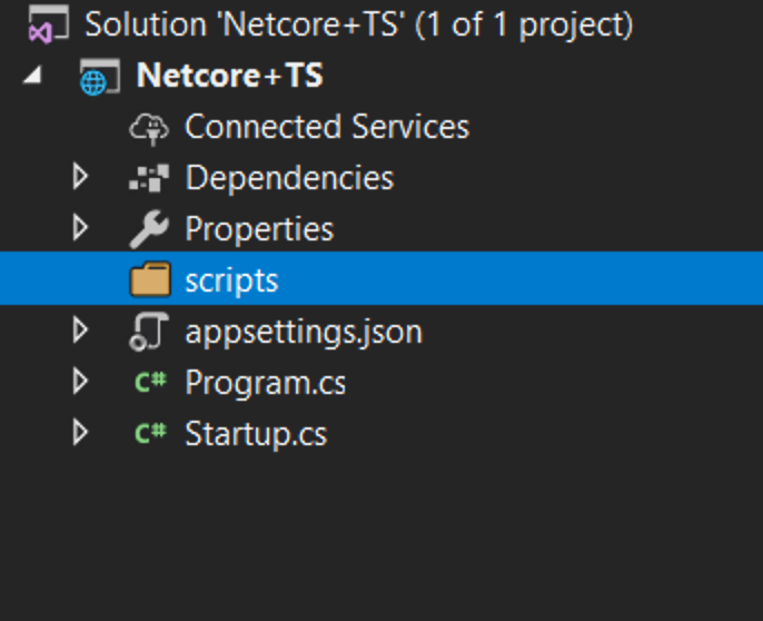 之後,您應該會在您的解決方案瀏覽器中看到一個 npm 資料夾